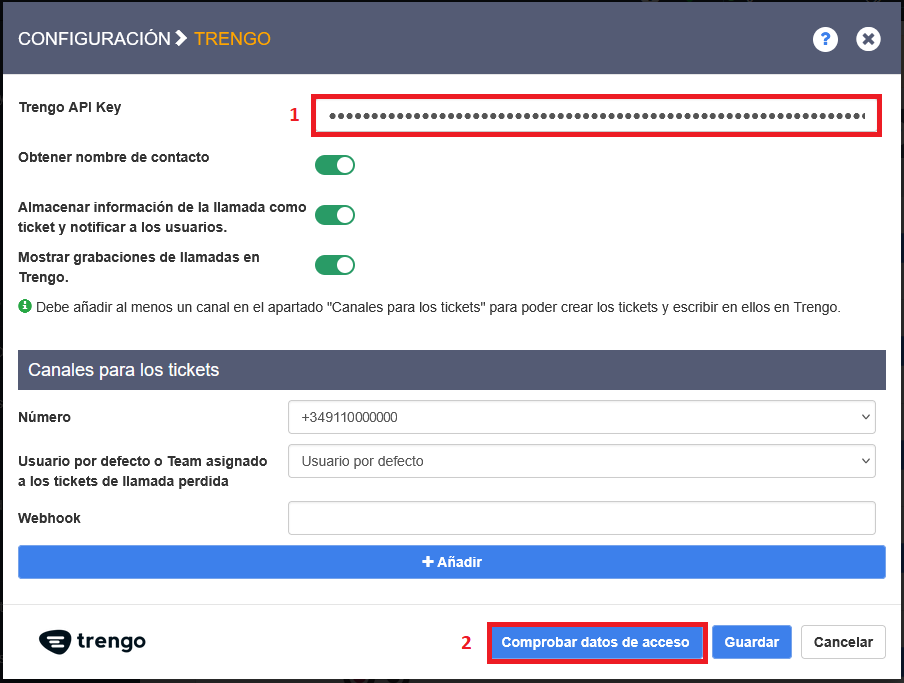 - Trengo API Key ➜ Enter the API key generated in point 1.