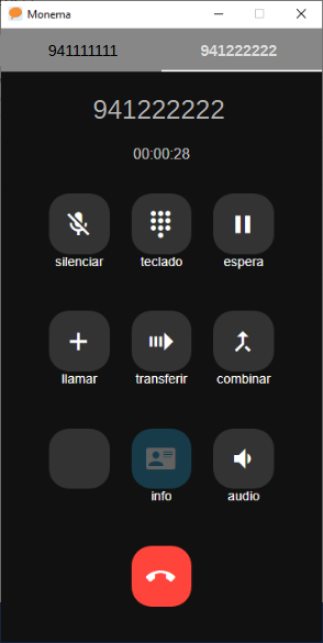 - Finally, click on the 'transfer' button [🢚] and select the number to which you want to transfer the call. When you do this, the call will be disconnected for you, but it will remain active for the other two speakers, who will now be connected to the same call.