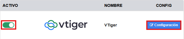 Una vez realizados estos pasos sólo necesita configurar la integración de VTiger en su panel de control de la centralita. Salte al paso 4 para consultar cómo hacerlo.